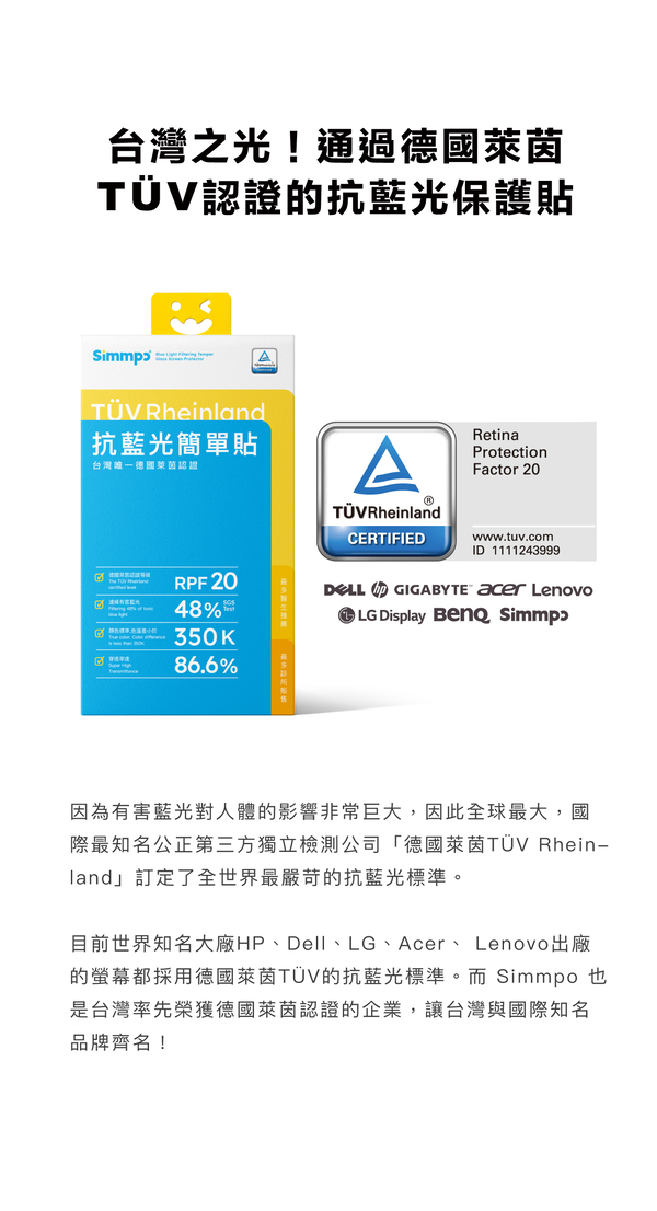 ◉ 霧面螢幕保護貼有加入「葉黃素酯」的成分,能有效吸收有害藍光。