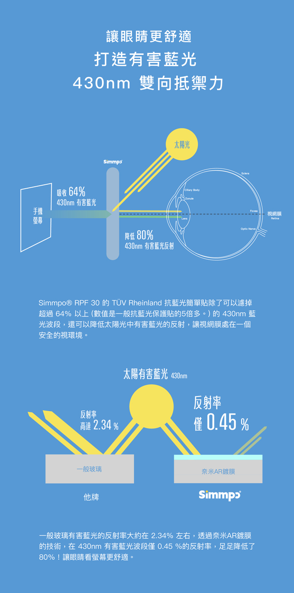 ◉ AR螢幕保護貼有加入「葉黃素酯」的成分,有效吸收有害藍光。